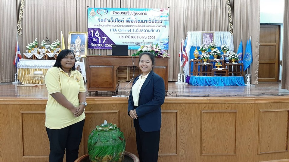 วันที่ 16-17 กันยายน 2562 คุณครูณัฐณิชา นิ่มนวล ได้รับมอบหมายจาก ดร.เพิ่มศักดิ์ บัวรักษ์ ผู้อำนวยการโรงเรียนวัดตึกราชา ให้เข้าร่วมอบรมเชิงปฏิบัติการ จัดทำเว็บไซต์ เพื่อพัฒนาเว็บไซต์ และเตรียมรองรับการประเมินคุณธรรมและความโปร่งใสในการดำเนินงานภาครัฐ (ITA Online) ระดับสถานศึกษา ประจำปีงบประมาณ 2562 ณ หอประชุมโรงเรียนวัดสังฆราชาวาส