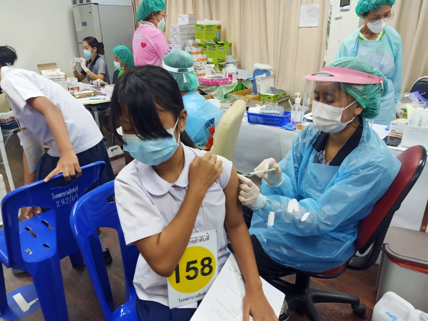 วันพุธที่ 27 ตุลาคม 2564 โรงเรียนวัดตึกราชาโดย ดร.เพิ่มศักดิ์ บัวรักษ์ ผู้อำนวยการโรงเรียนวัดตึกราชา นักเรียนชั้นประถมศึกษาปีที่ 6 ที่มีอายุ 12 ปีขึ้นไป จำนวน 8 คน เข้ารับการฉีดวัคซีนไฟท์เซอร์ (Phizer) ณ โรงพยาบาลสิงห์บุรี