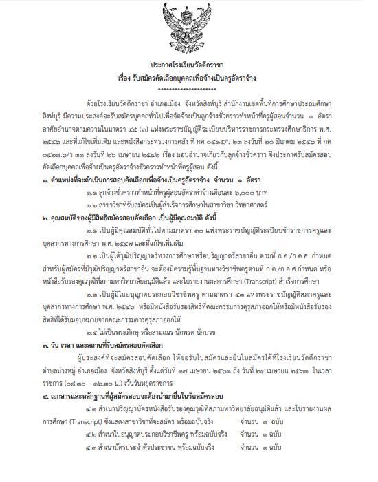 ประกาศรับสมัครครูอัตราจ้าง