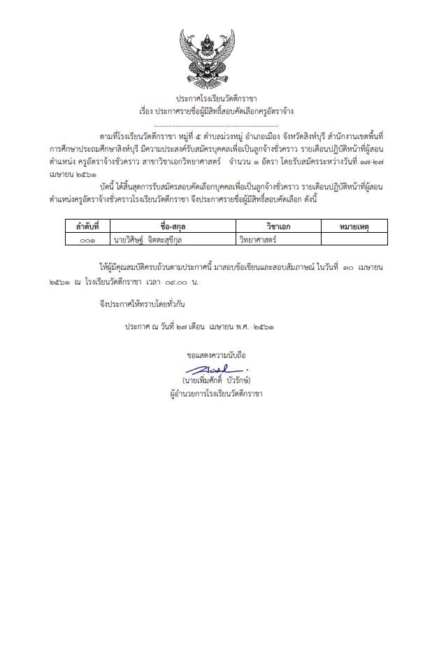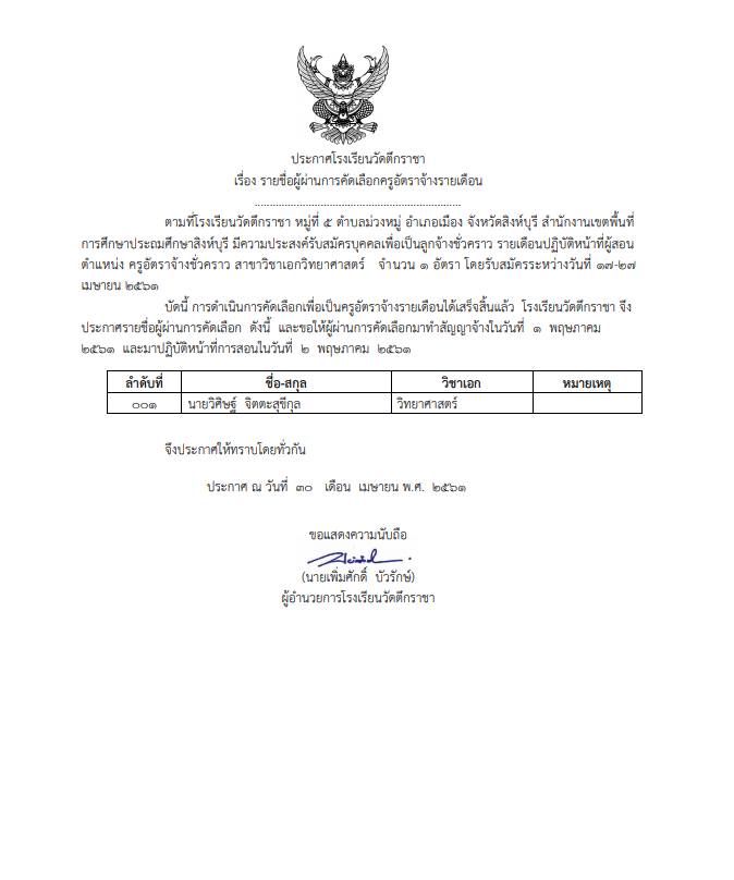 ประกาศรายชื่อผู้ผ่านการคัดเลือกครูอัตราจ้าง